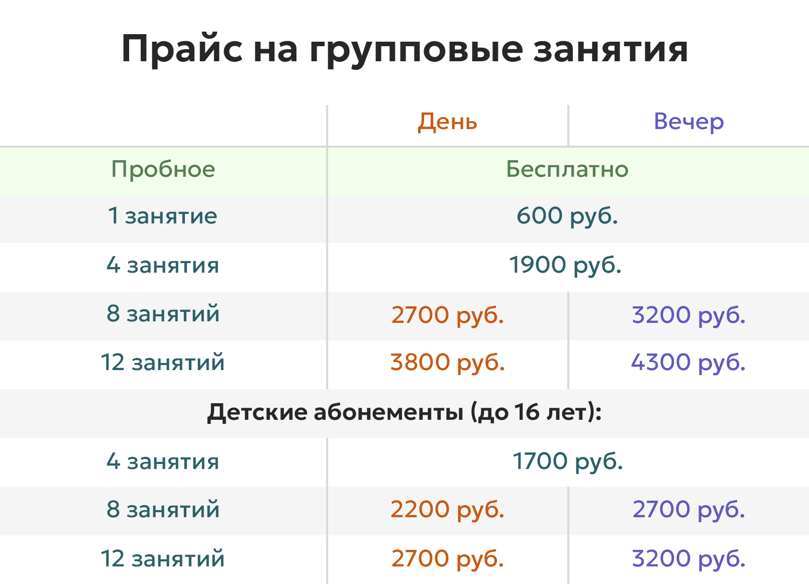 Скидка от 500 руб на дневной абонемент 8-12 занятий